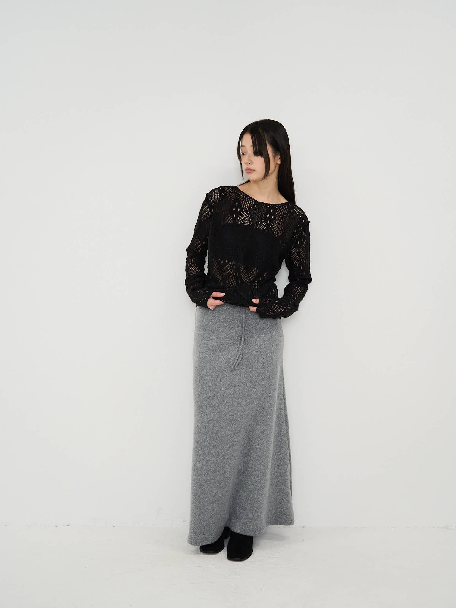 上品な質感が魅力のロングスカート。
