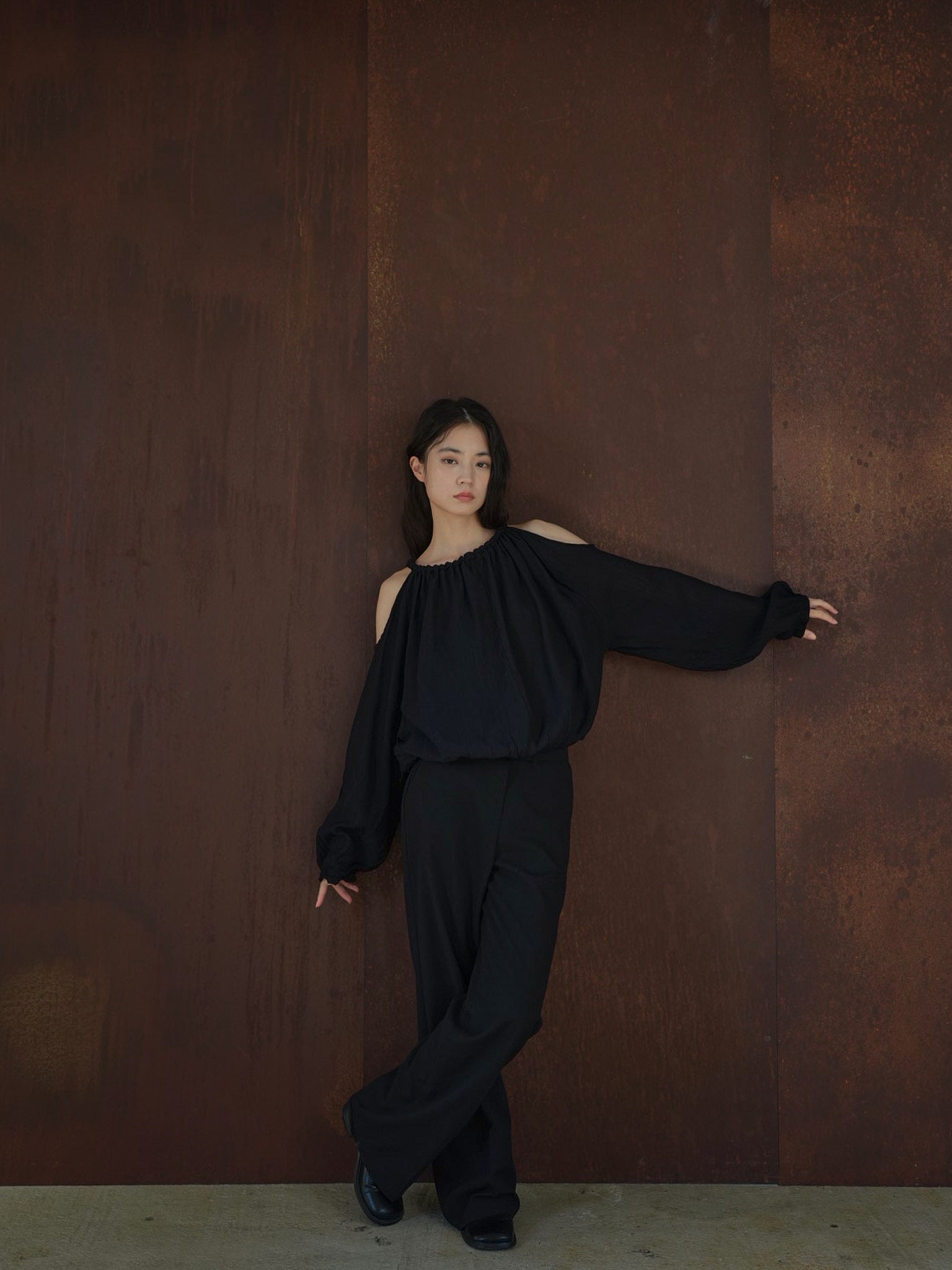 肩のカットアウトデザインが