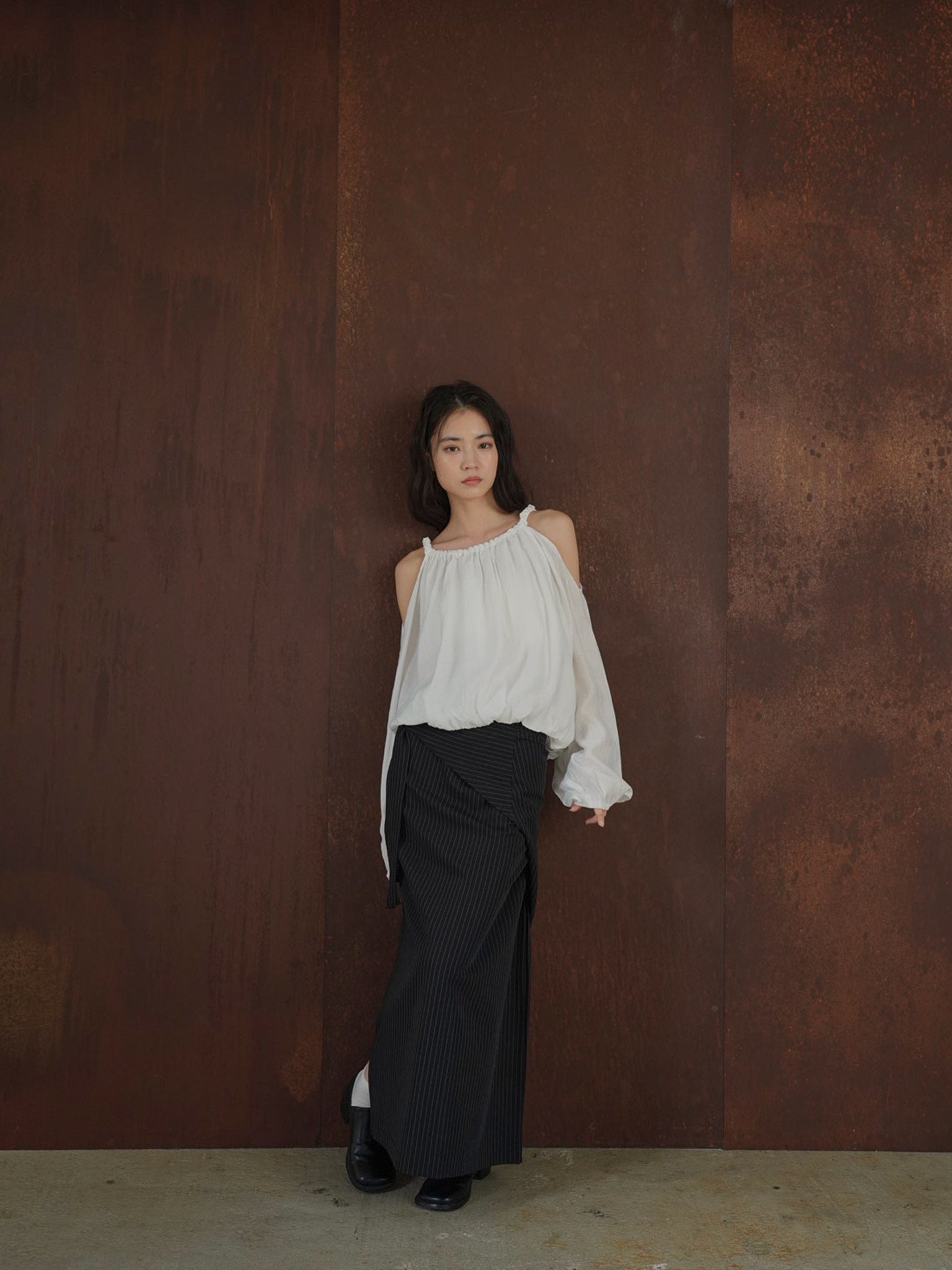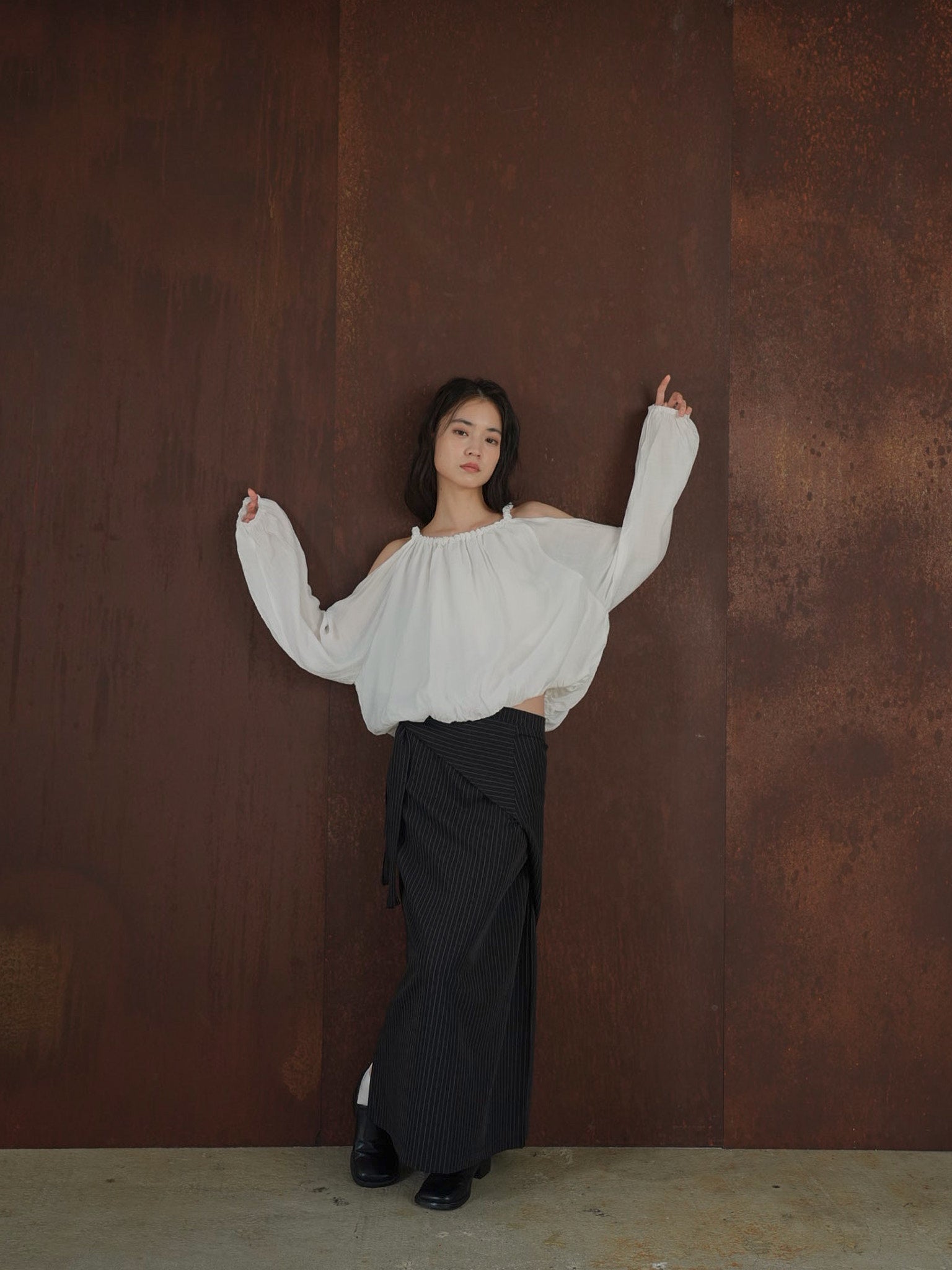 目を惹くブラウス。