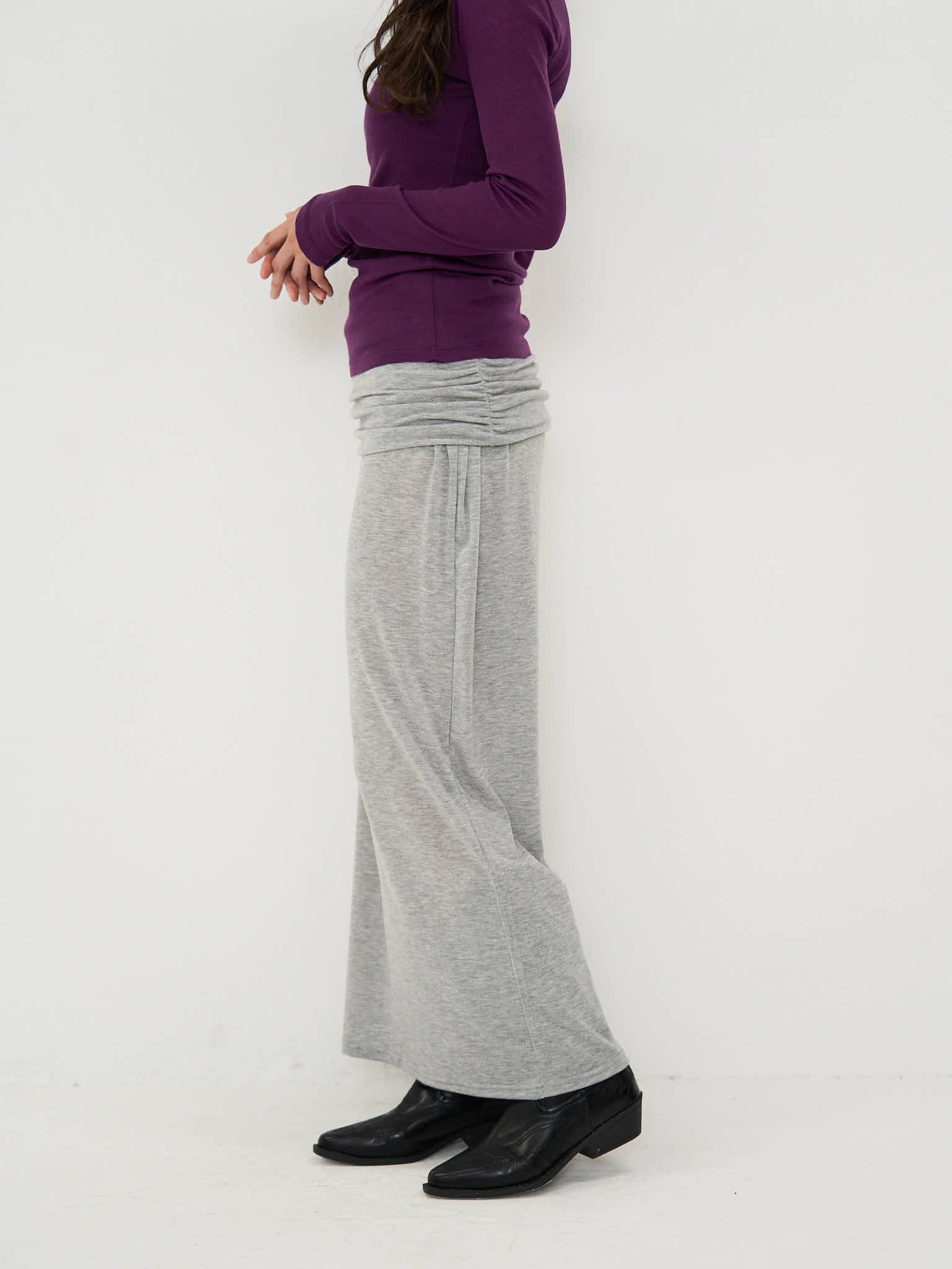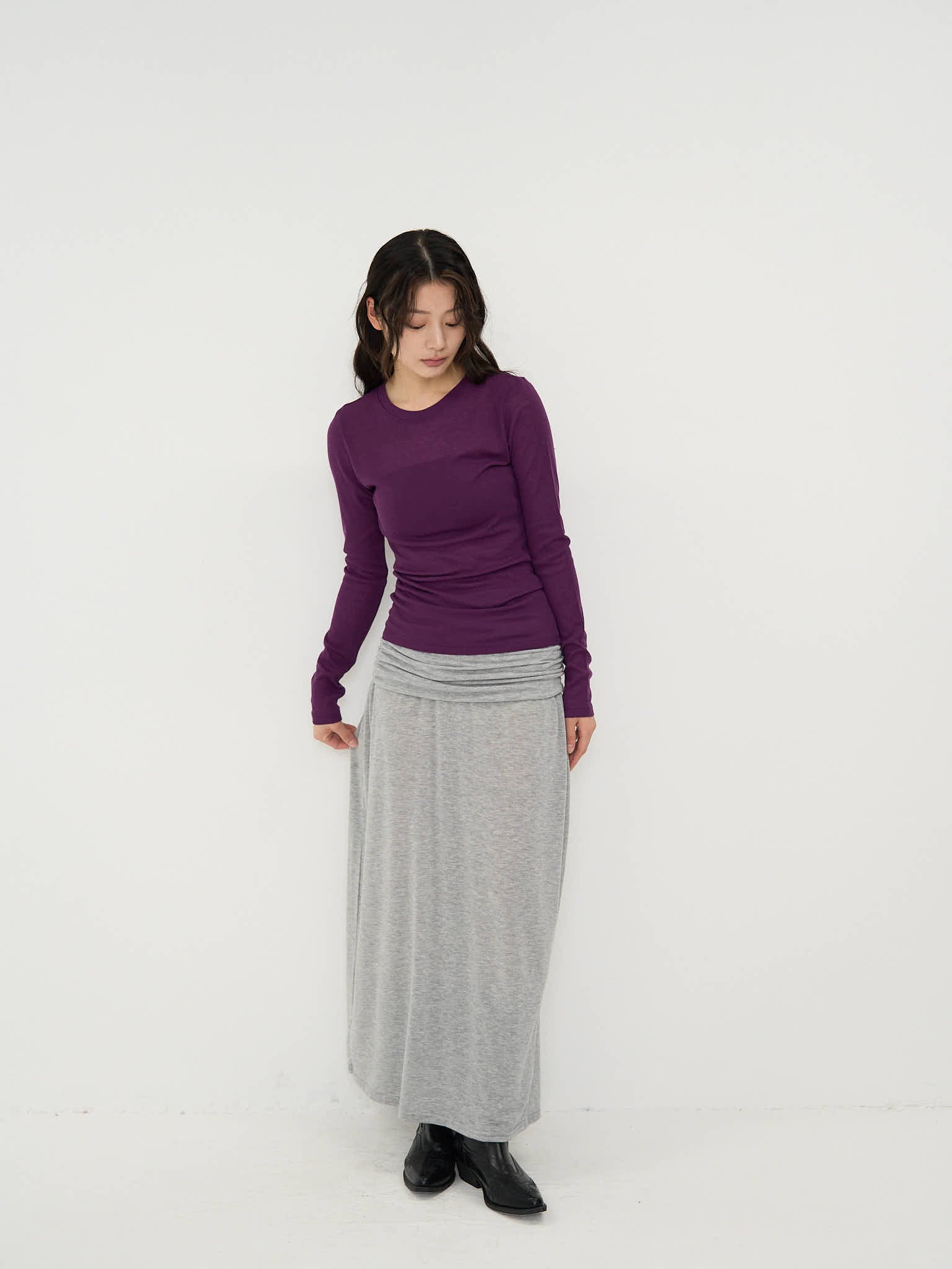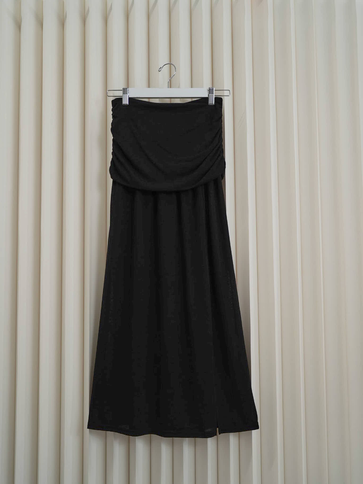 ドレープウエストが印象的なマキシ丈スカート。