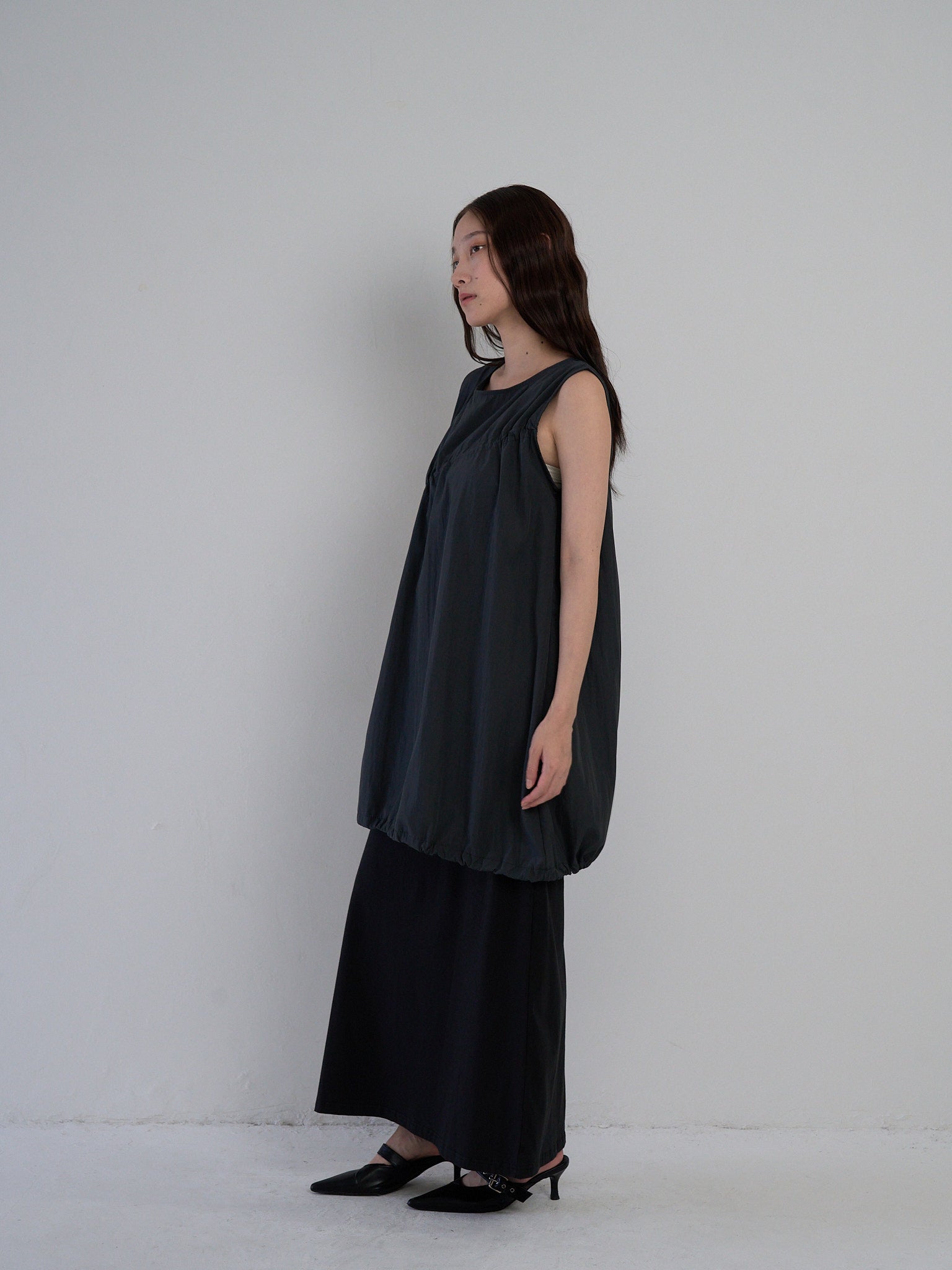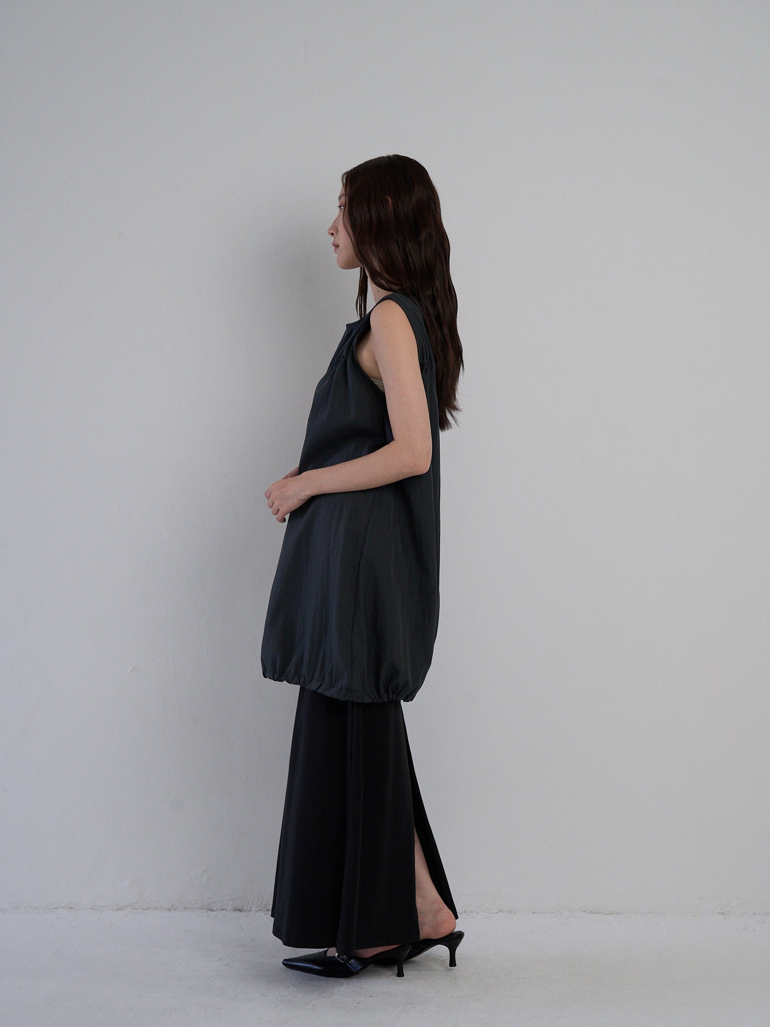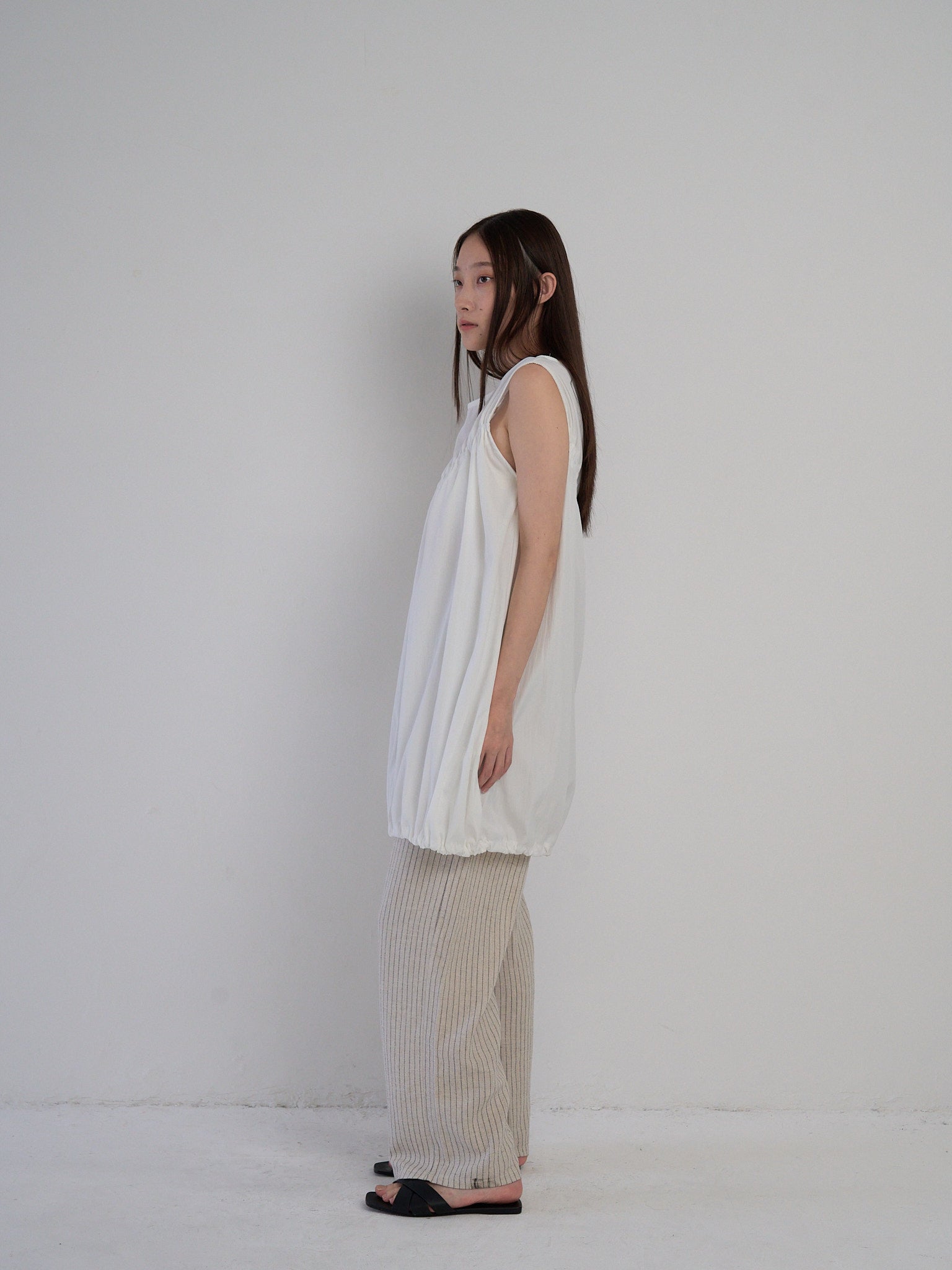 涼しげなギャザーワンピース。