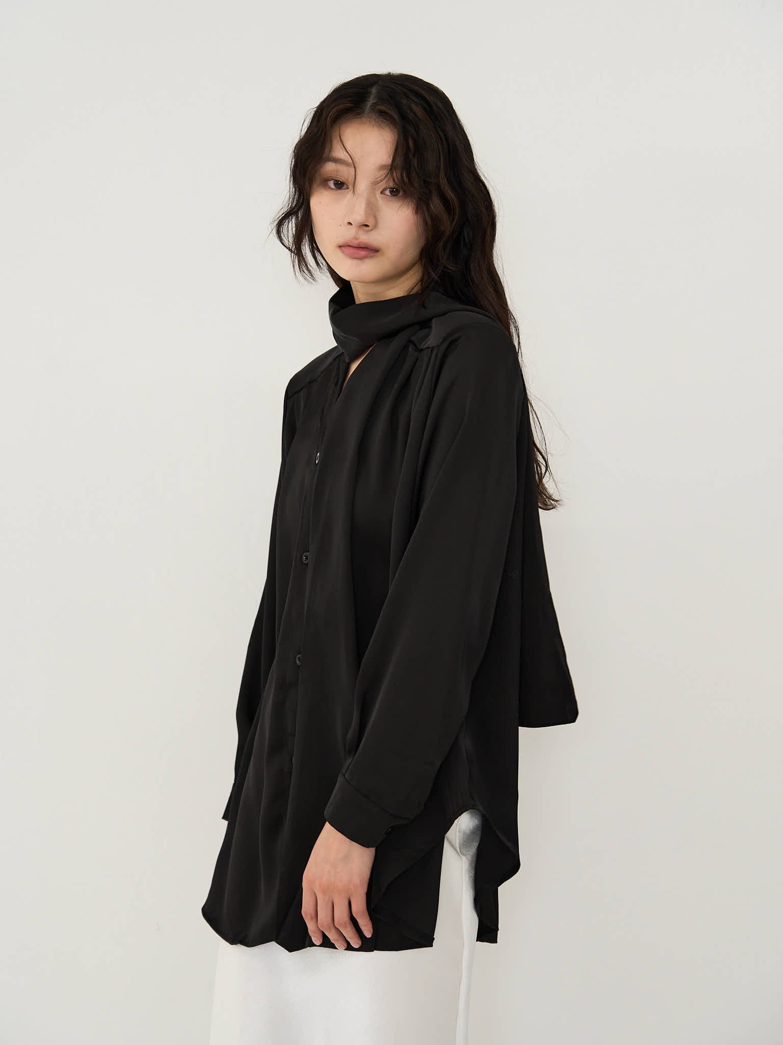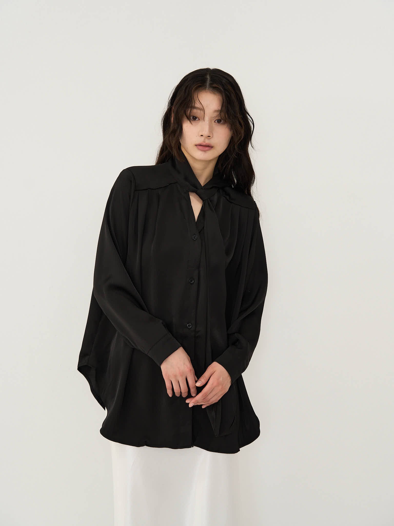 ドレープが上品な印象のブラウス。