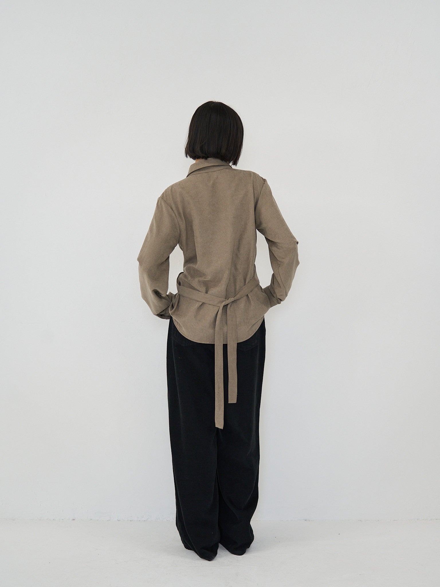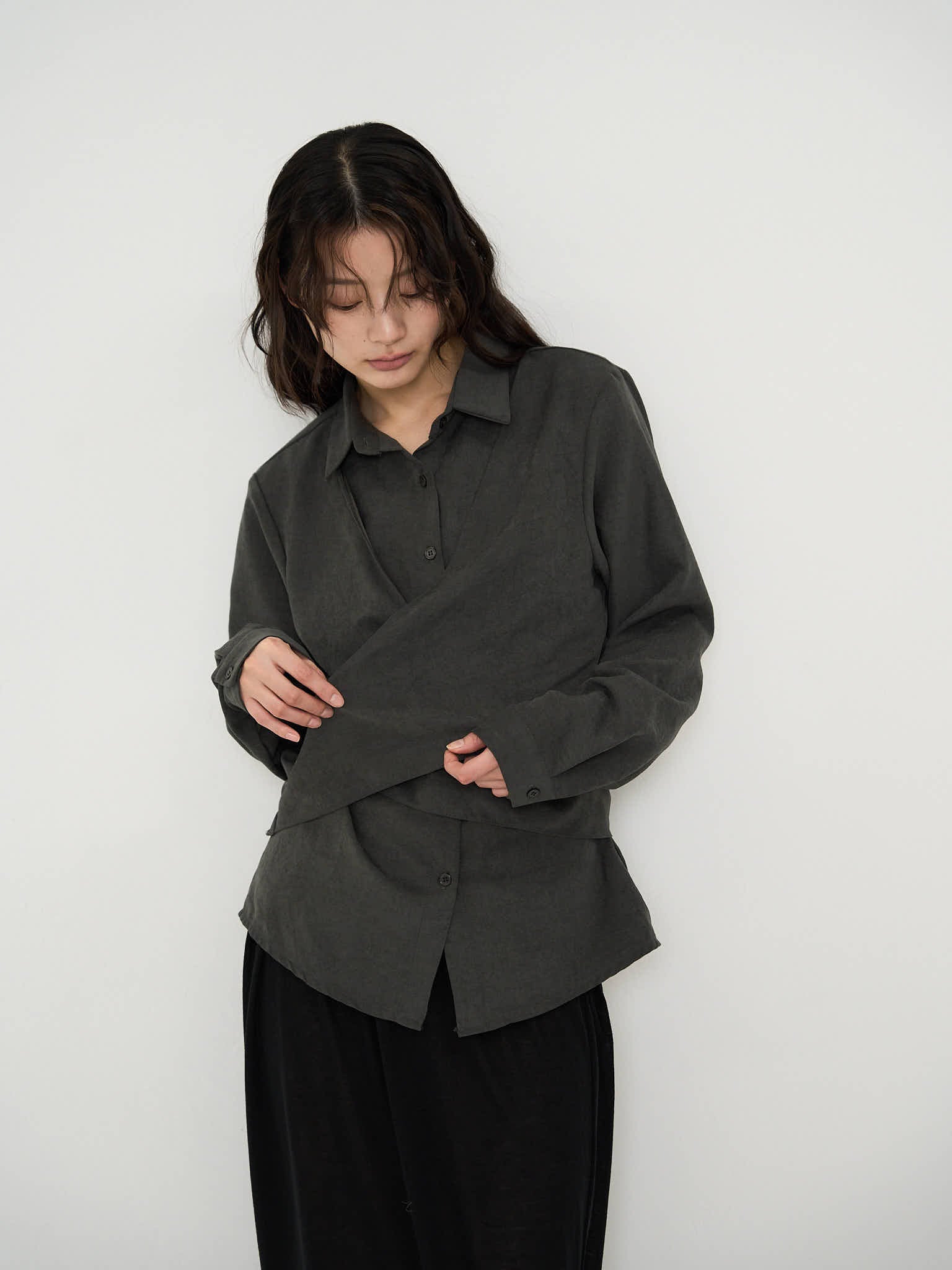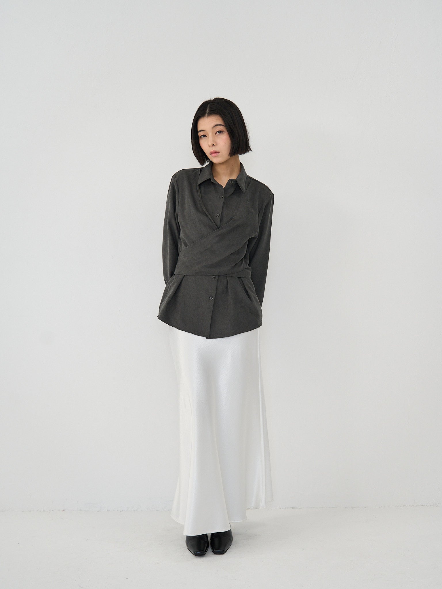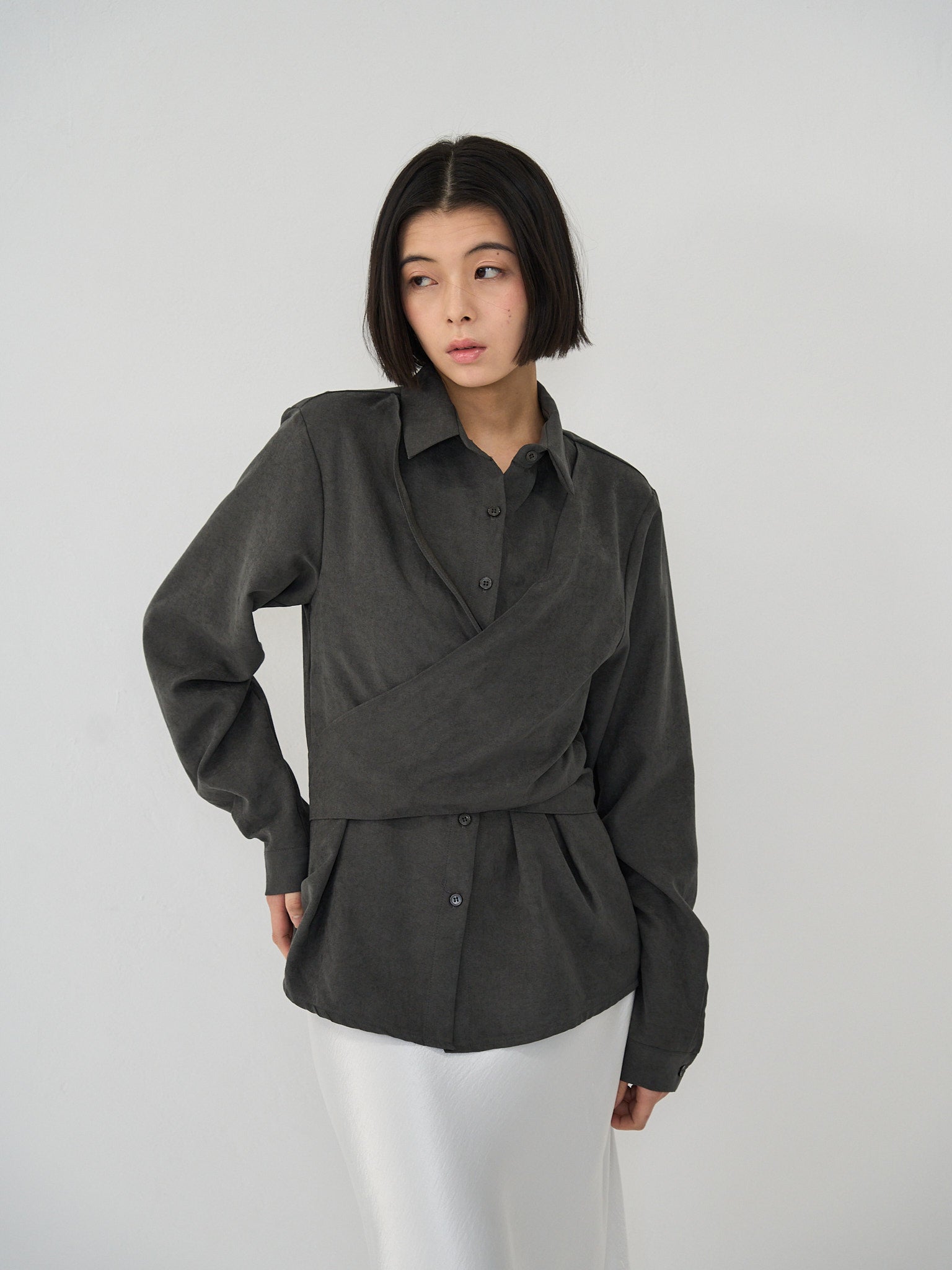 上品な印象のラップデザインブラウス。